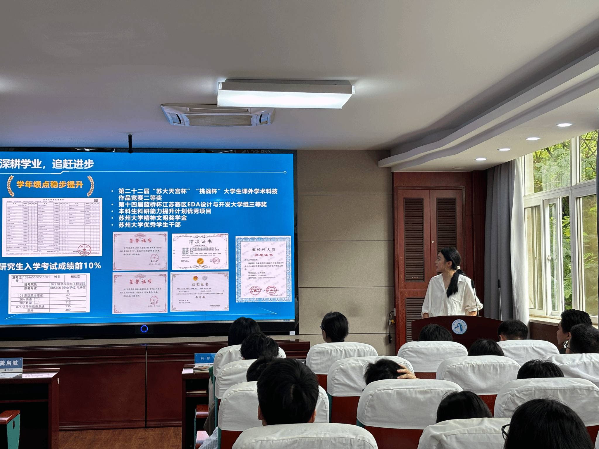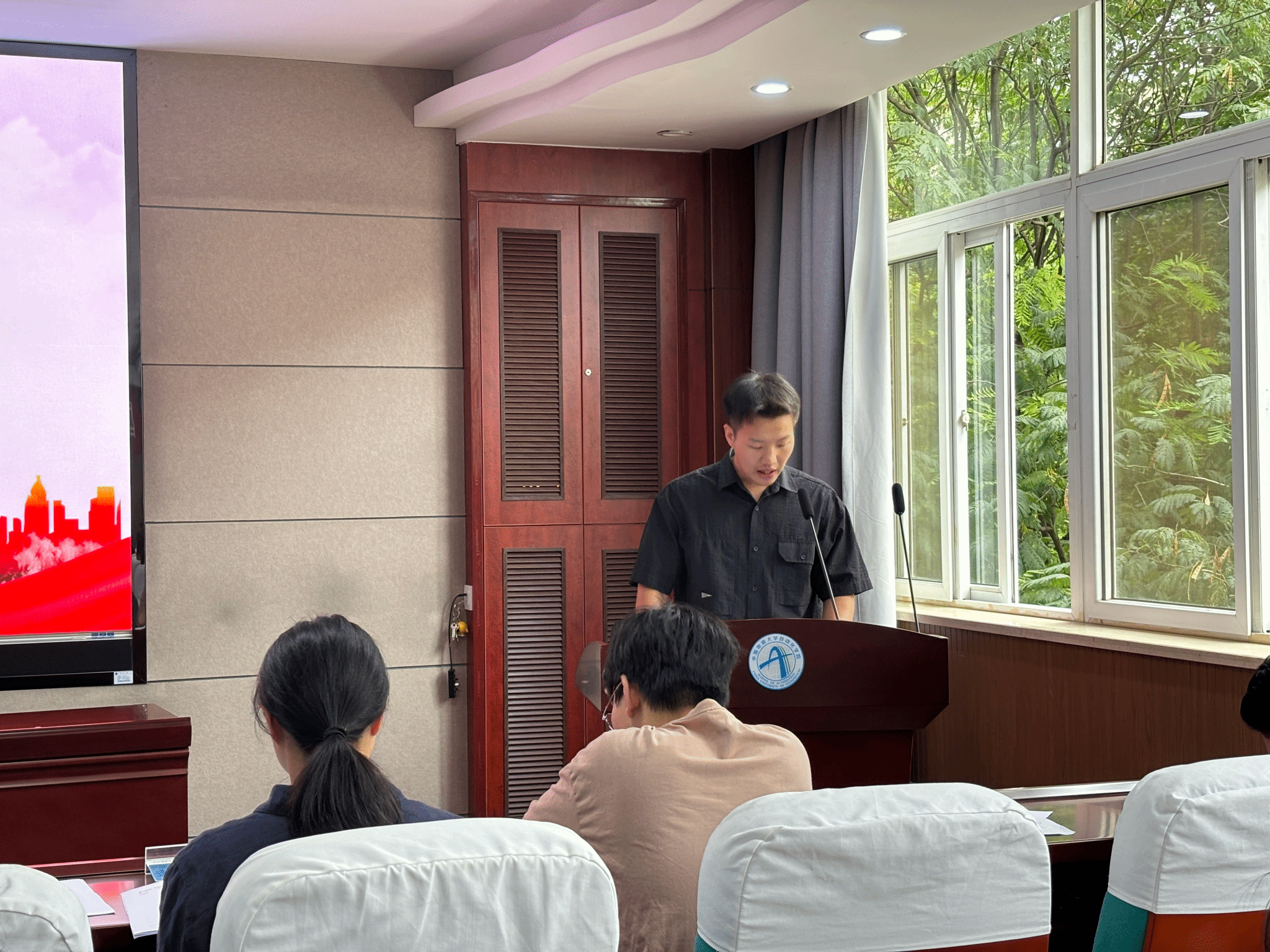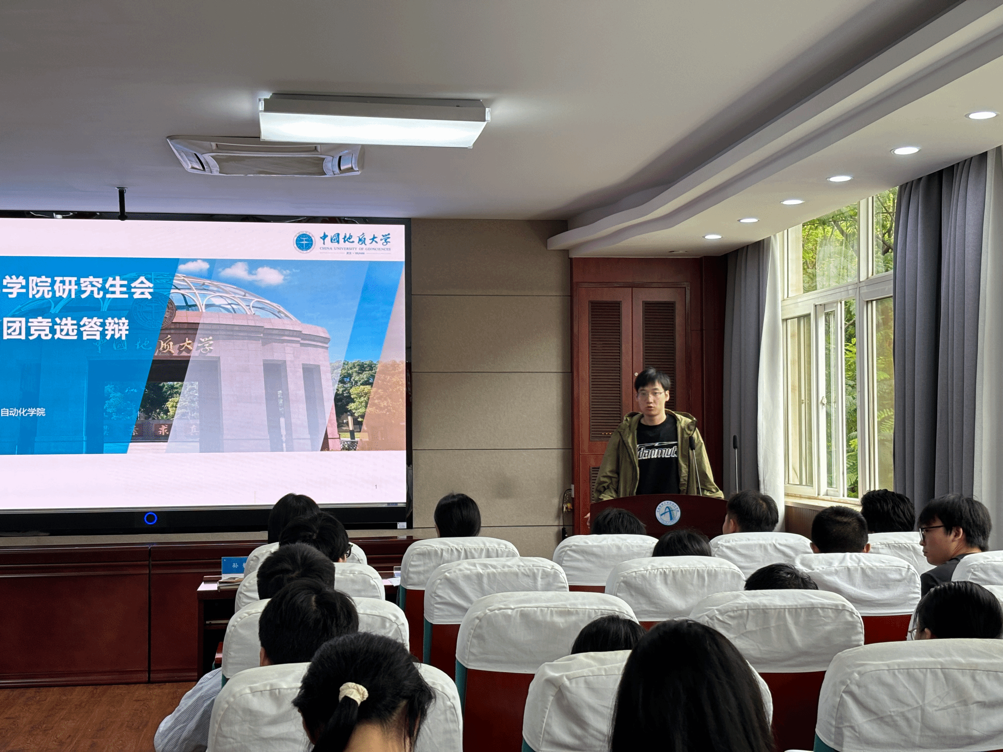 刘润子代表2024届研究生会向大会作《中国地质大学(武汉)自动化学院2024届研究生会工作报告》。他从学术交流、文体活动和就业服务等方面全面总结了一年来的工作亮点,同时也分析了工作中的不足之处,并提出了切实可行的改进建议。