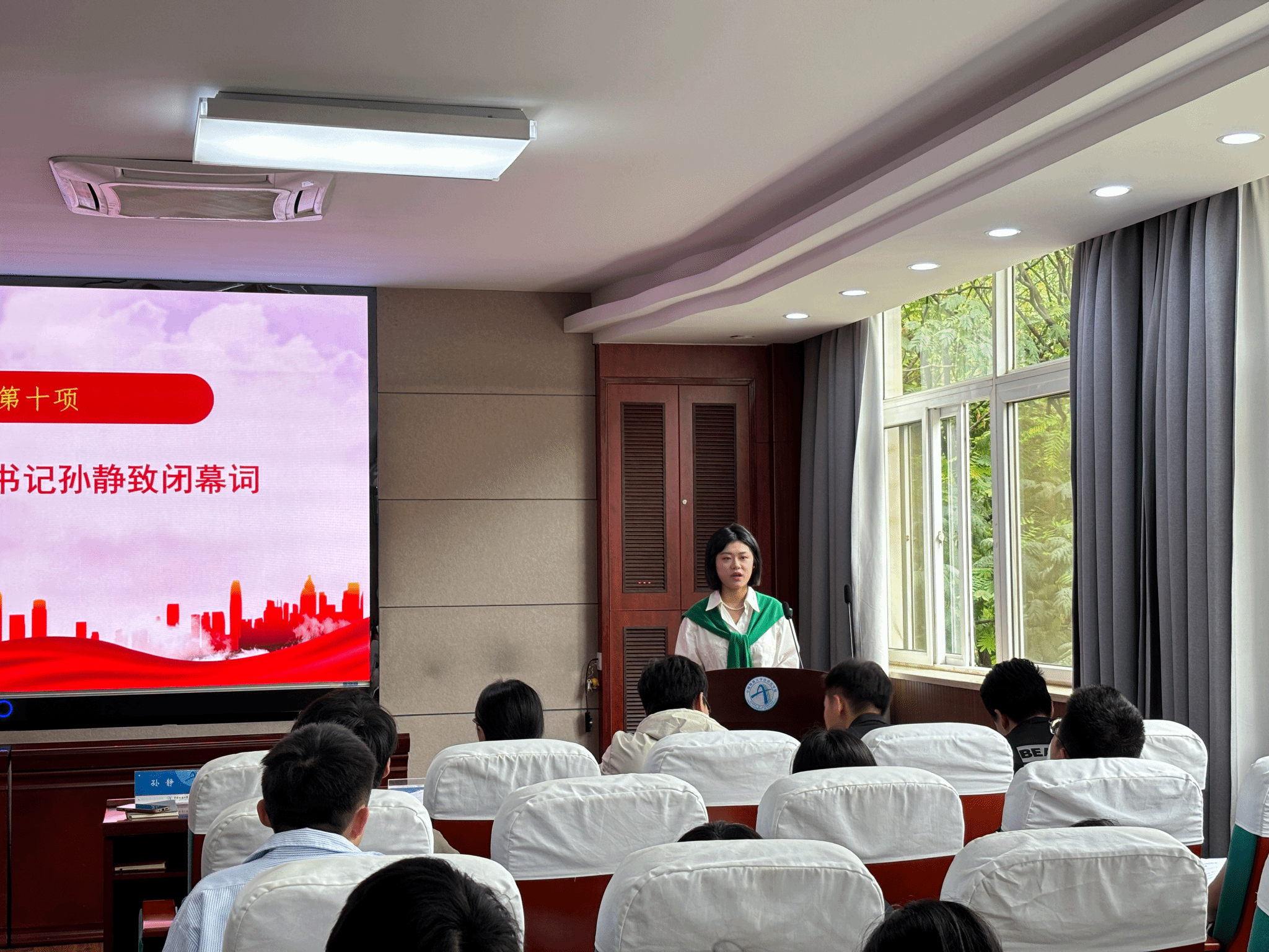 团委书记孙静老师致闭幕词。她提到,新一届研究生会应在传承原有特色活动的基础上,不断创新文体活动形式、促进院内文化交流,让研究生会工作真正成为助推学生成长成才的重要引擎。