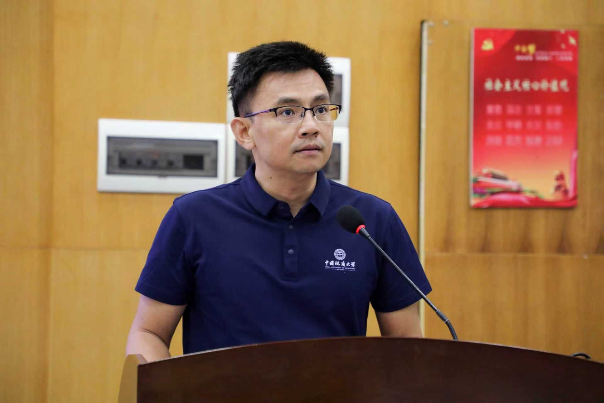 教师代表、23Z255班班主任陆承达发言。他说,大学是同学们独立探索、自主成长的广阔天地,他建议同学们想清楚“为什么学”,要学会学习,夯实专业基础,在实践中解决一个个学科问题,以脚踏实地的态度走好学习生涯的每一步。