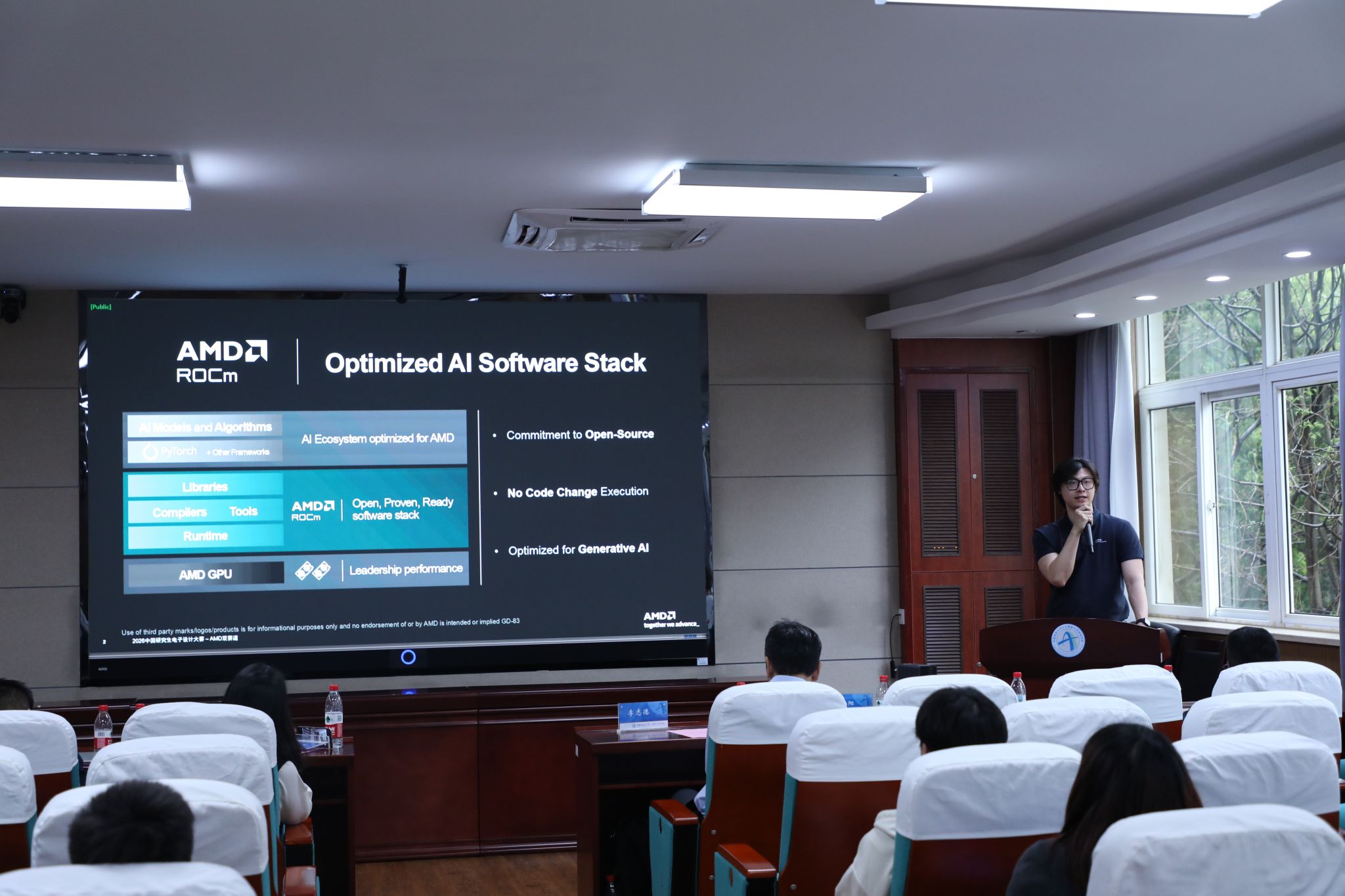 AMD大中华区AI市场营销负责人昝仲阳、资深软件工程师吴天远分别介绍本年度AMD企业命题,重点讲述了基于AMD锐龙AI MAX+平台的端侧AI智能体与垂直行业创新应用和基于AMD ROCm™软件生态与Radeon平台的智能算力赋能科研项目两大赛题方向。优利德科技(中国)股份有限公司华中区现场应用工程师张长庆从超外差窄带宽频谱仪和任意波形发生器的技术原理、应用场景及竞赛命题要求等方面进行了赛题讲解。第二十届中国研究生电子设计竞赛冠军团队、华中科技大学光学与电子信息学院博士生艾轲分享了选题、备赛、参赛的经验。