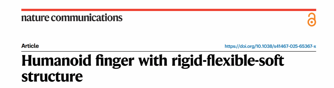 近日,我院智能机器人系统实验室赖旭芝教授团队在《Nature》子刊《Nature Communications》上发表重要研究成果:Humanoid finger with rigid-flexible-soft structure,我院为第一完成单位,系我院第一篇《Nature》子刊论文。该研究设计了一款刚-柔-软结构仿人手指,融合了多种材料的优势,兼具稳定性与安全性,同时保持了结构的紧凑性与简洁性。