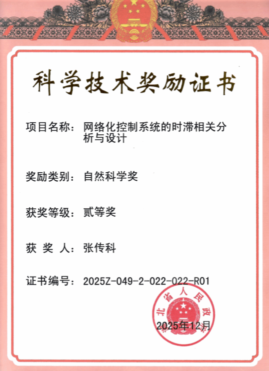 1月4日上午,湖北省科技创新大会召开,公布了《湖北省人民政府关于2025年度湖北省科学技术奖励的决定》。我院张传科教授团队“网络化控制系统的时滞相关分析与设计”项目荣获湖北省自然科学奖二等奖。向张传科教授团队表示祝贺!(通讯员:张静)